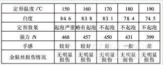 采用不同溫度對金銀絲/棉提花交織物進行定形(定形時間為60s),織物質量情況見表4。