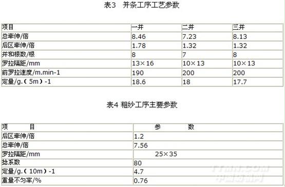 (2)優選粗紗捻系數與細紗后區牽伸倍數之間的匹配;