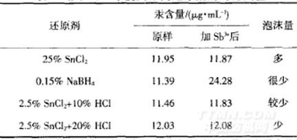 表1加入Sb3+干擾用不同還原劑的對比試驗