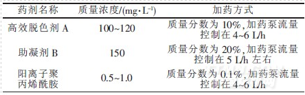 表3 加藥濃度及加藥方式