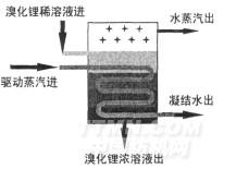 技術(shù)原理 在壓力一定的條件下,不同的物質(zhì),水和溴化鋰的蒸發(fā)溫度不同。在發(fā)生器內(nèi),利用外界驅(qū)動熱源的熱量,對溴化鋰稀溶液進(jìn)行濃縮,產(chǎn)生的濃溶液進(jìn)入吸收器進(jìn)行吸收,同時產(chǎn)生的水蒸汽進(jìn)入再加熱器,對熱媒進(jìn)行再次加熱。