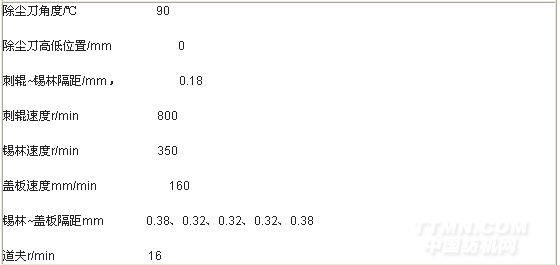 表3-1梳理工藝(TN25/CJ75 14.8tex)
