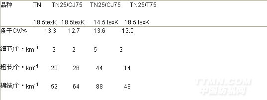 表3-4細紗質量水平(TN ,TN25/CJ75 )