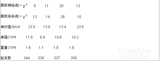 工藝調整后,細紗的各項指標均有好轉。適當減小細紗后區牽伸倍數,發揮主牽伸區的作用,有利于提高細紗的條干水平。但如果后區牽伸過小,就會增加主牽伸區的負荷,容易發生“吐硬頭”現象,使粗紗不易被牽伸開來。所以在牽伸分配時,應該考慮主牽伸區的牽伸能力,在主牽伸能力允許范圍內,適當減小后區牽伸,才能起到降低條干水平的作用。否則,就會適得其反,不僅條干得不到改善,而且還會造成細紗生活不好做。