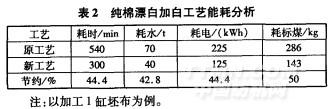 兩種工藝的加工成本見表2。表2表明,低溫漂白加白工藝在水、電以及蒸汽等方面的節能效果顯著。