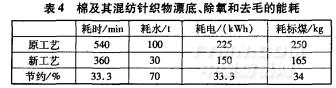 表4數據顯示,應用生物酶染整加工技術對棉及其混紡針織物進行漂底、除氧和拋光,在節約用水、用電和耗汽等方面具有突出的效果。