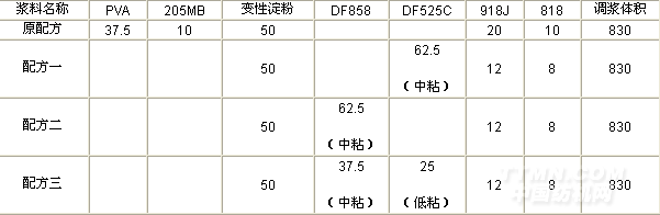 表二 新舊漿料配方比較