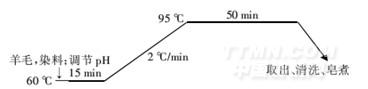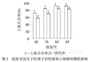 由圖3可知,升高溫度,上染百分率和固色率同時升高,原因是溫度升高,染料高分子間的締合度下降,有利于染料向纖維內部擴散.
