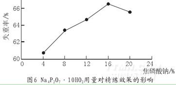 由圖6可得出結論,當Na4P2O7 •10HO2為16%(omf)時,失重率最大為66.52%,可以獲得最佳的處理效果。