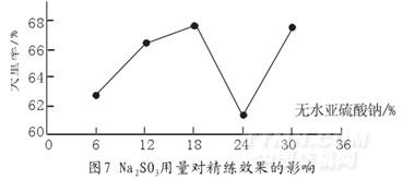 由上圖可得出結論,當Na2SO3為18%(omf)時,失重率最大為67.62%。可以獲得最佳的處理效果。