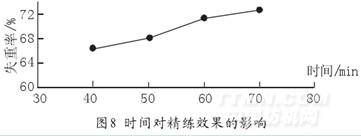 在不改變煮練Ⅱ處方中各用量的前提下,僅改變時間,失重率變化結果見圖8。