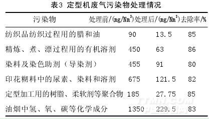 (1)由于蒸汽鍋爐或?qū)嵊蜖t運(yùn)行時(shí)達(dá)到設(shè)定溫度后會(huì)間歇停爐,所以在間歇期間就不能吸入定型機(jī)煙氣。該部份廢氣經(jīng)旁路直排到除塵塔,再經(jīng)噴淋,油質(zhì)及溶劑類的VOC冷凝吸附后以液態(tài)形式收集,油類的去除率高達(dá)95%以上,總VOC量降低80%以上。據(jù)監(jiān)測(cè)分析,單從定型機(jī)產(chǎn)生的煙氣,經(jīng)過熱能環(huán)保裝置后,廢氣中的有害物質(zhì)去除率已達(dá)80%以上,再經(jīng)過二次燃燒,總?cè)コ蔬_(dá)90%以上,雖有部分煙氣經(jīng)旁路排出,僅占的比例約為15%。