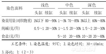 扎染一般用直接染料的染色方法,以卷染為主,由于直接染料的色譜齊全,色澤鮮艷,價格低廉,染色方法簡便,更適合小匹號,多花色,效果優良,更能體現扎染面料的風格。