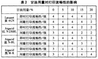 2。2.4甘油用量對打印流暢性的影響(見表2)