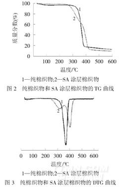 (1)苯乙烯用量為8%(對單體總質量),能制得乳液性能和膠膜性能均優良、外觀呈乳白泛藍光的乳液粘合劑SA,轉化率達97.52%.(2)聚丙烯酸酯類分子鏈中引入苯乙烯后,共聚物分子鏈的剛性提高,玻璃化轉變溫度升高.(3)將乳液粘合劑SA 涂膜于棉織物表面,棉織物的熱分解溫度提高了27 ℃左右,說明SA 具有較好的熱穩定性.