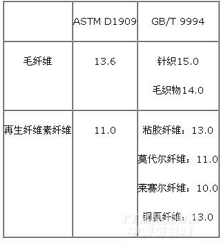 我國標準明確規定,纖維重量百分含量應結合公定回潮率計算。雖然美國標準中沒有明確的要求,但檢測機構出具的報告還是結合公定回潮率進行計算的。由于兩國的標準體系中公定回潮率的不同,可能會導致結果的差異,所以在計算時一定要選擇正確的回潮率值。兩種典型的纖維回潮率比較見表 4。