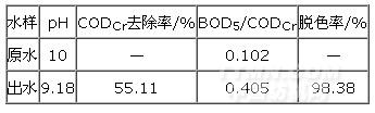 表1 pH為10的模擬廢水臭氧化60 min的處理效果