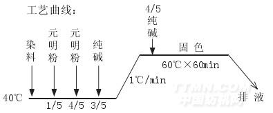 (2)染色采用升溫法。(3)元明粉、純堿用量要分次加入,確保勻染。