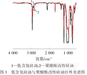 低含氫硅油與聚醚酯改性硅油紅外光譜見圖3.