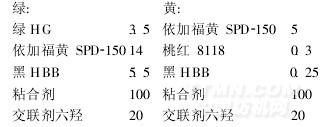 (3)黃配色換用耐干洗的涂料青蓮HR代替涂料桃紅8118,刮樣試驗?zāi)透上?級,耐日曬4級。