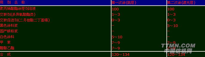 ⑵ 工藝流程和條件:半制品→預(yù)處理→底涂→烘干→第二次涂遮光層→烘干→第三次涂表層→烘干 工藝條件:預(yù)處理,預(yù)防水(處方同前),烘干或平軋光。 涂層: 底涂:用浮刀法銳角刮刀。 第二次遮光層:用浮刀法圓形刮刀,必要時(shí)可重復(fù)一次。 第三次表層:用浮刀法銳角刮刀。 烘干:90~100℃。
