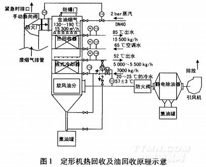 油煙在熱回收器和板式冷卻器中被冷卻至60℃左右,為保持油脂溫度不低于其熔點42℃,在水側設溫度調節裝置,使進人熱交換器中的油脂不至于凝結。