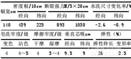 成品面料按照企業標準進行檢驗,各項指標見表2。