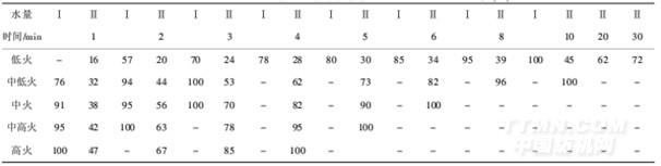 表140mL或300mL水在不同微波火力加熱不同時間的水浴溫度(℃)