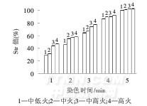 圖1低火條件下不同染色時間時的相對色深