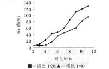 圖3低火條件下不同浴比時的相對色深