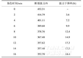 表3微波染色不同時(shí)間后織物的斷裂強(qiáng)力