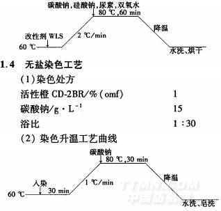材料95cm,18.5tex/18.5tex,268根/10cmx213根/10cm平紋純棉織物藥品活性橙CD.2BR、活性翠藍CD_2BG、活性紅X-3B、活性黑DS—DH(工業(yè)品,上海科華染料有限公司),陽離子改性劑wLS(自制),碳酸鈉、硅酸鈉(均為分析純,天津市恒興化工試劑制造有限公司),30%雙氧水(分析純,天津市精細化工有限公司),尿素(分析純,西安市化學試劑廠)儀器DSDB一1型數(shù)字白度儀(溫州鹿東儀器廠),722型光柵分光光度計(上海第三分析儀器廠),HHS-24型電熱恒溫水浴鍋(上海東星建材試驗設(shè)備有限公司),SF300電子天平(上海良平儀器儀表有限公司),Y571B型耐摩擦牢度儀(溫州紡織儀器廠),SW一12型耐洗牢度儀(無錫紡織儀器廠),SF一300型思維士電腦測色儀(思維士科技公司)