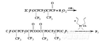 以全氟聚醚酰氟為原料,合成了全氟聚醚二酰基過氧化物(B),并由其引發(fā)二甲基二烯丙基氯化銨聚合得到聚合物Pf,其合成路線如下所示: