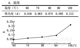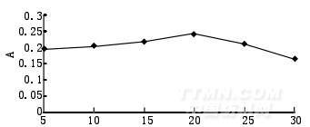 從圖3可以看出,隨著溫度的升高,吸光度顯著升高,當(dāng)達(dá)到100℃時(shí),吸光度達(dá)到最高值,考慮到實(shí)驗(yàn)中的實(shí)際操作,提取時(shí)確定方法為沸煮。