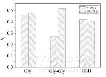 2.2.3Gly-Gly-MIPMs的選擇吸附性為考察所制備的Gly-Gly-MIPMs對Gly-Gly分子具有的特異選擇性,采用薄層色譜(TLC)分離實驗研究了Gly-Gly-MIPMs對具有類似結(jié)構(gòu)的甘氨酸(Gly)、雙甘氨肽(Gly-Gly)和谷胱甘肽(GSH)3種不同底物的選擇吸附性,其比移值Rf