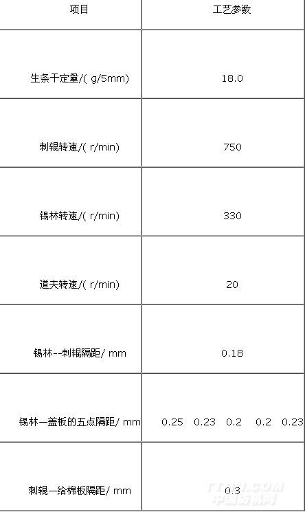 表1 梳棉工序主要工藝參數(shù)