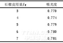 表1不同石榴皮用量提取石榴皮色素的吸光度
