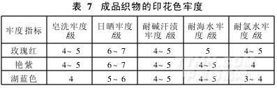 由表7知,Nylanthrene系列酸性染料印花錦綸彈力織物的色牢度指標均能滿足高檔錦綸印花泳裝的質量要求,可實現錦綸高彈織物酸性染料印花的重現性與高色牢度。