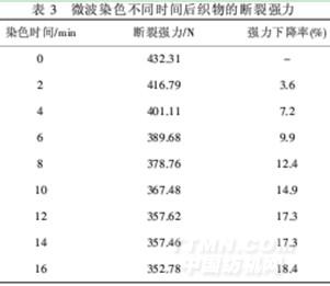 (2)與常規染色法相比,微波染色更節省時間和能源,且染色牢度和透染性與常規染色相似.微波會使織物的強力稍有下降.