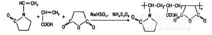 試劑 乙烯基吡咯烷酮(AR,上海試劑總廠);丙烯酸(AR,華東醫藥有限公司);馬來酸酐(CP,上海試劑總廠);過硫酸銨(AR,華東醫藥總公司);亞硫酸氫鈉(AR,上海試劑總廠);氫氧化鈉(AR,上海試劑總廠);活性紅3BS,活性黃3RS(廣州市榮慶化學制品有限公司)