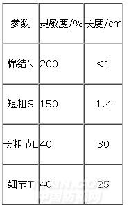 正常的天絲纖維中,只含有少量的粗硬絲、并絲等,長(zhǎng)度整齊度好,短絨含量少,為了兼顧生產(chǎn)成本,不可避免要使用回花、再用棉。但天絲纖維疵點(diǎn)含量明顯升高時(shí),車肚落棉、斬刀中疵點(diǎn)結(jié)雜明顯增多,我們初步統(tǒng)計(jì)車肚中硬雜質(zhì)含量高達(dá)520~780mg/100g,而且含有大量短絨,必須經(jīng)過處理方可少量回用。