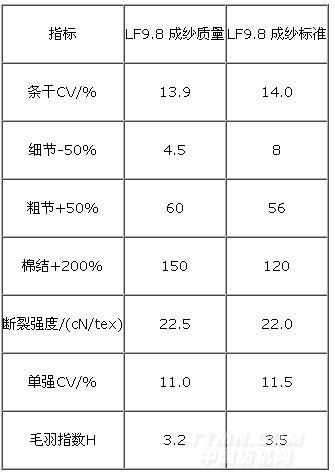 表8 LF9.8紗線指標(biāo)及紗線質(zhì)量