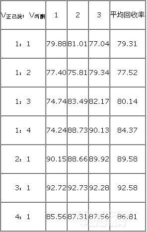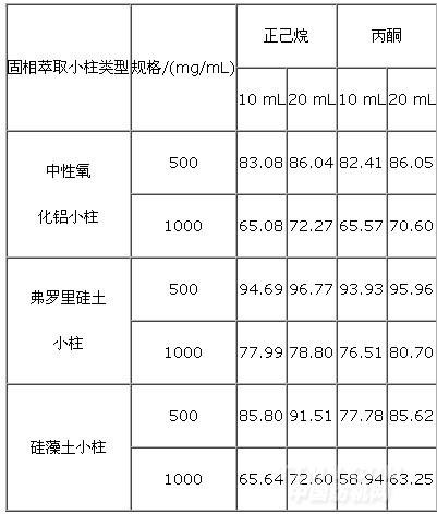 表5 正己烷和丙酮不同比例洗脫時的回收率 %