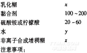 (4)增稠糊應(yīng)選擇耐電解質(zhì)且含固量低的糊料,如非離子合成增稠糊。