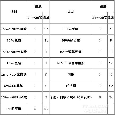 注1:符號說明:So––立即溶解;S––溶解;P––部分溶解;I––不溶。