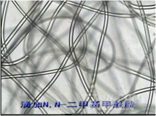 將溶解實驗和顯微鏡觀察實驗結合起來,在顯微鏡觀察試樣中纖維縱向形態的同時,往載玻片上滴入不同試劑,觀察顯微鏡下維特綸纖維的溶解性能,或維特綸纖維在溶液中的狀態。