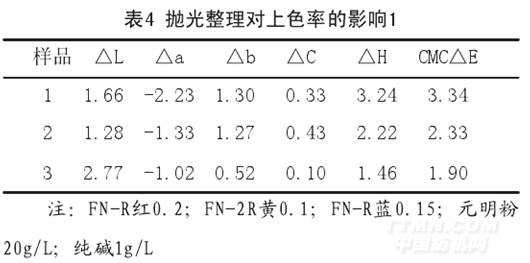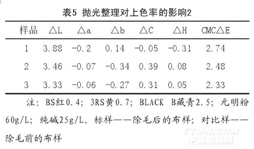 5.3 拋光整理對上色率的影響(表4、表5)