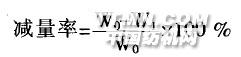 等。(3)材料B70/C30 60/2~30,64x64.5,156 cm人字斜半制品(蕪湖裕中紡織有限公司提供)。1-2 工藝配方酶用量(g·L一 ):XJFC(g’L ):1溫度(℃):y時間(min):z浴比:20:11-3 工藝流程配制整理液浴一投入織物一升至規定溫度一設置規定時間一取出織物一熱水洗滌(15 min,80℃)一烘至恒重(105℃)一綜合性能測試。1.4 測試試驗(1)減量率測定:分別將原試樣和處理后織物試樣(每組份為2 g),在標準大氣條件下放置8 h以上.然后用精密電子分析天平稱重(精確到0.0002g),按下列公式計算減量率: