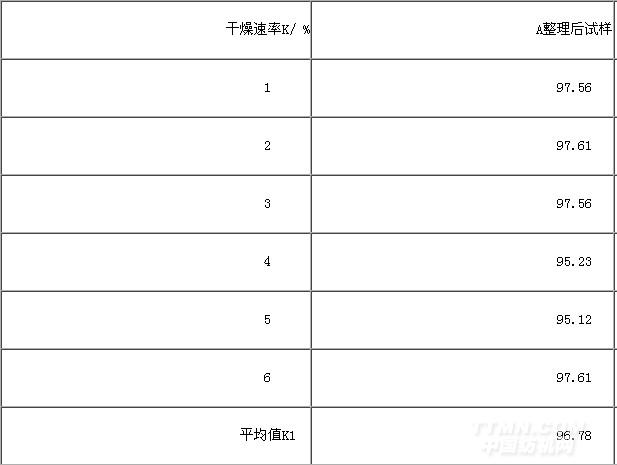 按照上述試驗方法得到的測試數據按公式(5)計算得出試樣的干燥速率如表6。