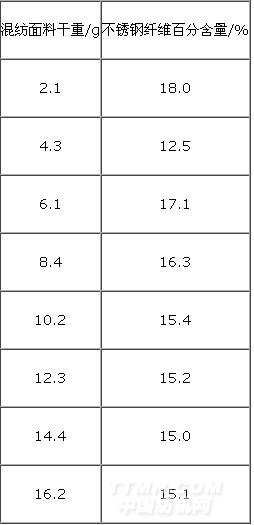 表2 棉/不銹鋼纖維混紡面料中不銹鋼纖維的含量測定